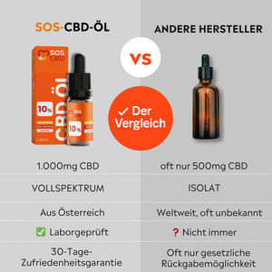 SOS CBD-ÖL 10% 10mlCBD-ÖL zum fairen Preis Warum soll Gutes immer teuer sein? Wir wissen, wie viele Menschen täglich CBD-Öle nutzen und wir wissen auch, dass das für viele Menschen eine...